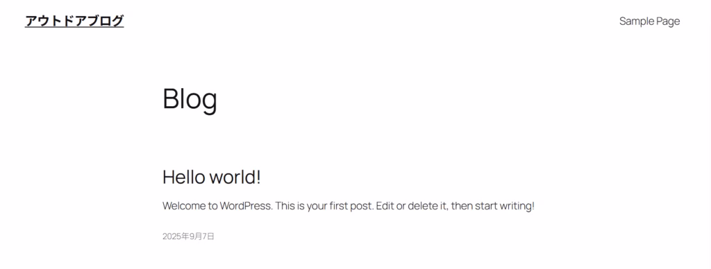 WordPressの初期テーマが表示されていれば、インストール成功です。表示されない場合は、SSLの反映待ちやキャッシュの影響が考えられます。