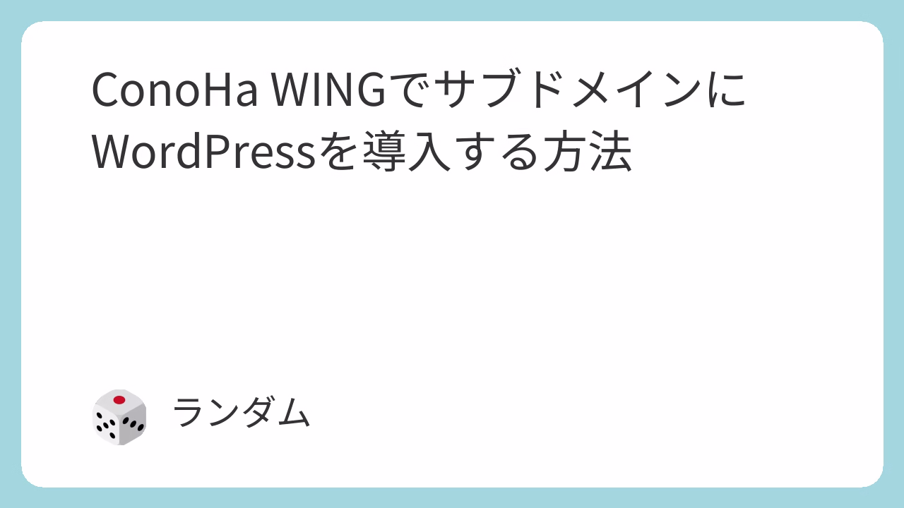 ConoHa WINGでサブドメインにWordPressを導入する方法