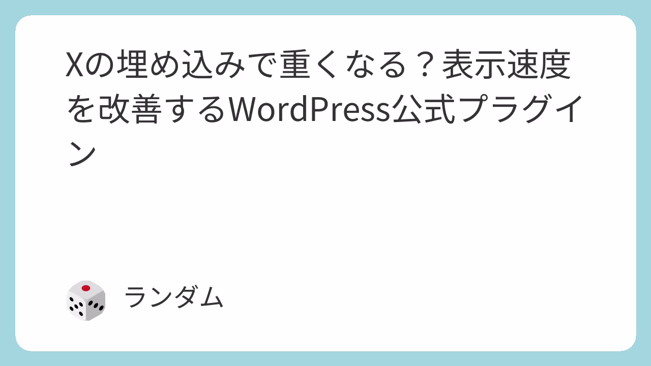 - WordPress公式プラグイン「Embed Optimizer」を使えば、非同期読み込みで表示速度を改善可能