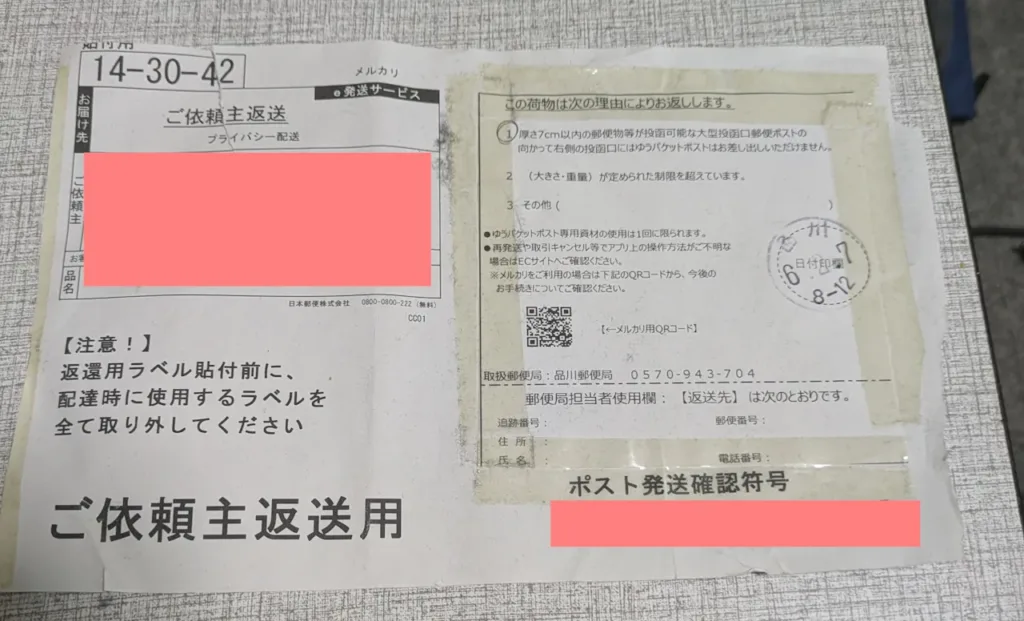 ところが、ある日突然「ご依頼主返送」のラベルが貼られて自宅に戻ってきました。